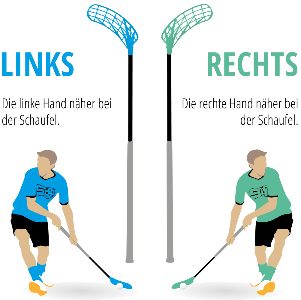 Beim Unihockey gibt es linke und rechte Schaufeln. Das hat nichts damit zu tun, ob du Links- oder Rechtshänder*in bist.